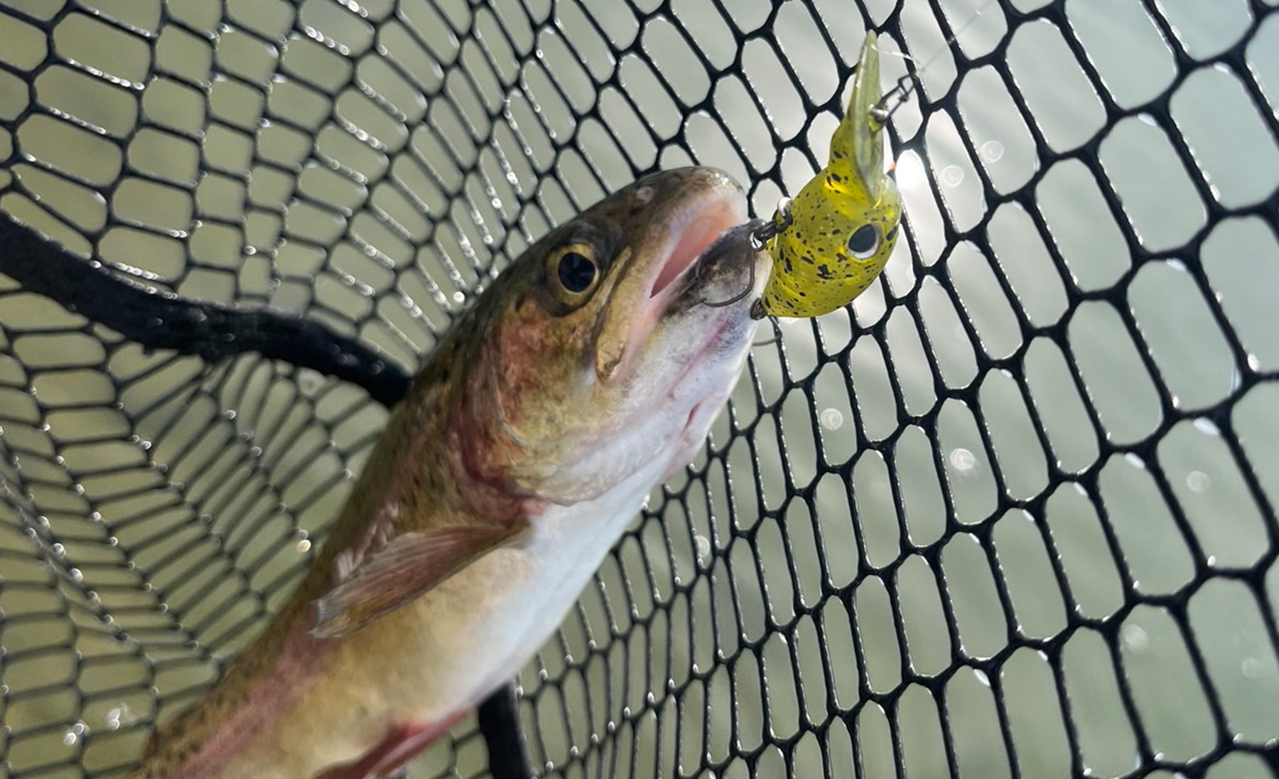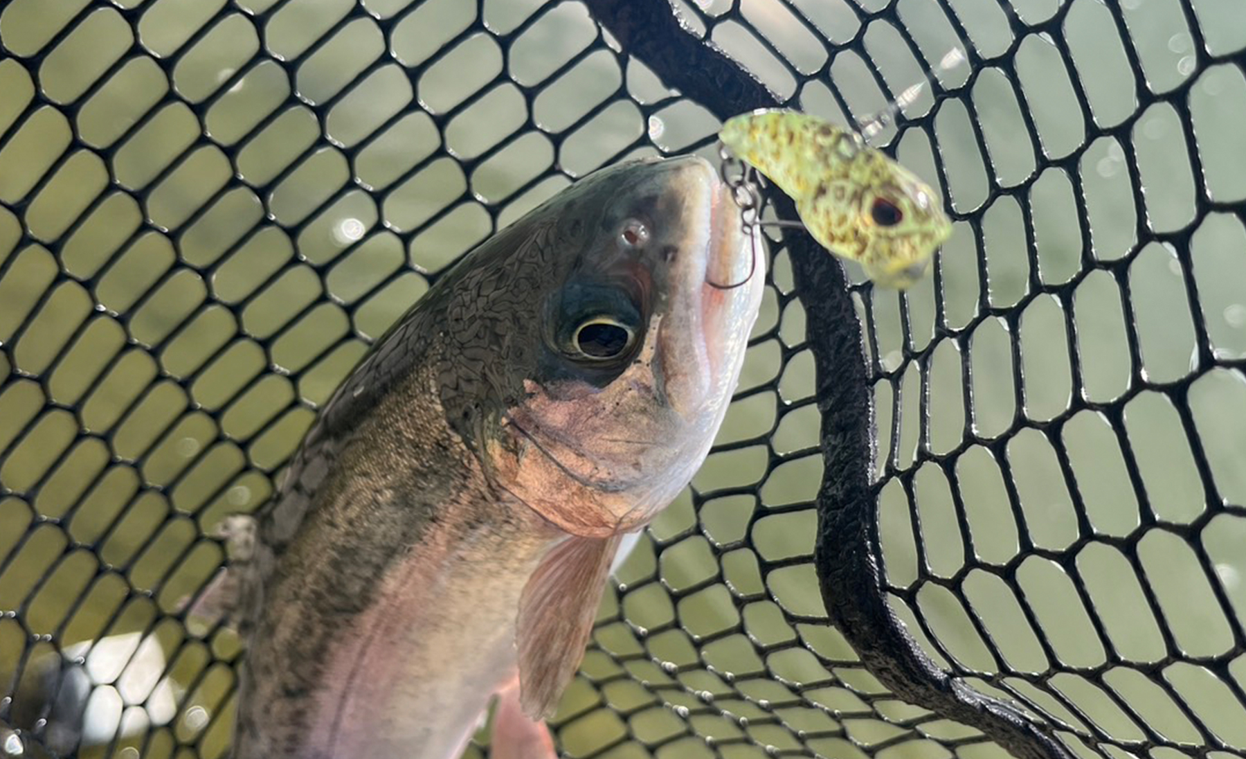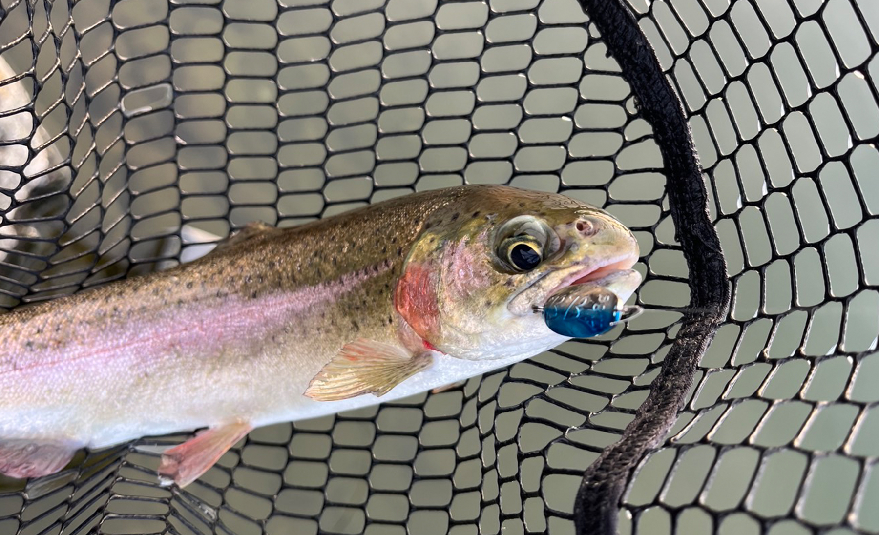 まずは朝一の状況把握のため、ブラックブラスト1.8g シルバーブルーで実釣開始。選択理由としては、当日の冷え込みからスローな展開を予想し、レンジキープ力の高さ・アピールの強さを重視、リアクション的にも反応するシルバー系の光物を選択しました。