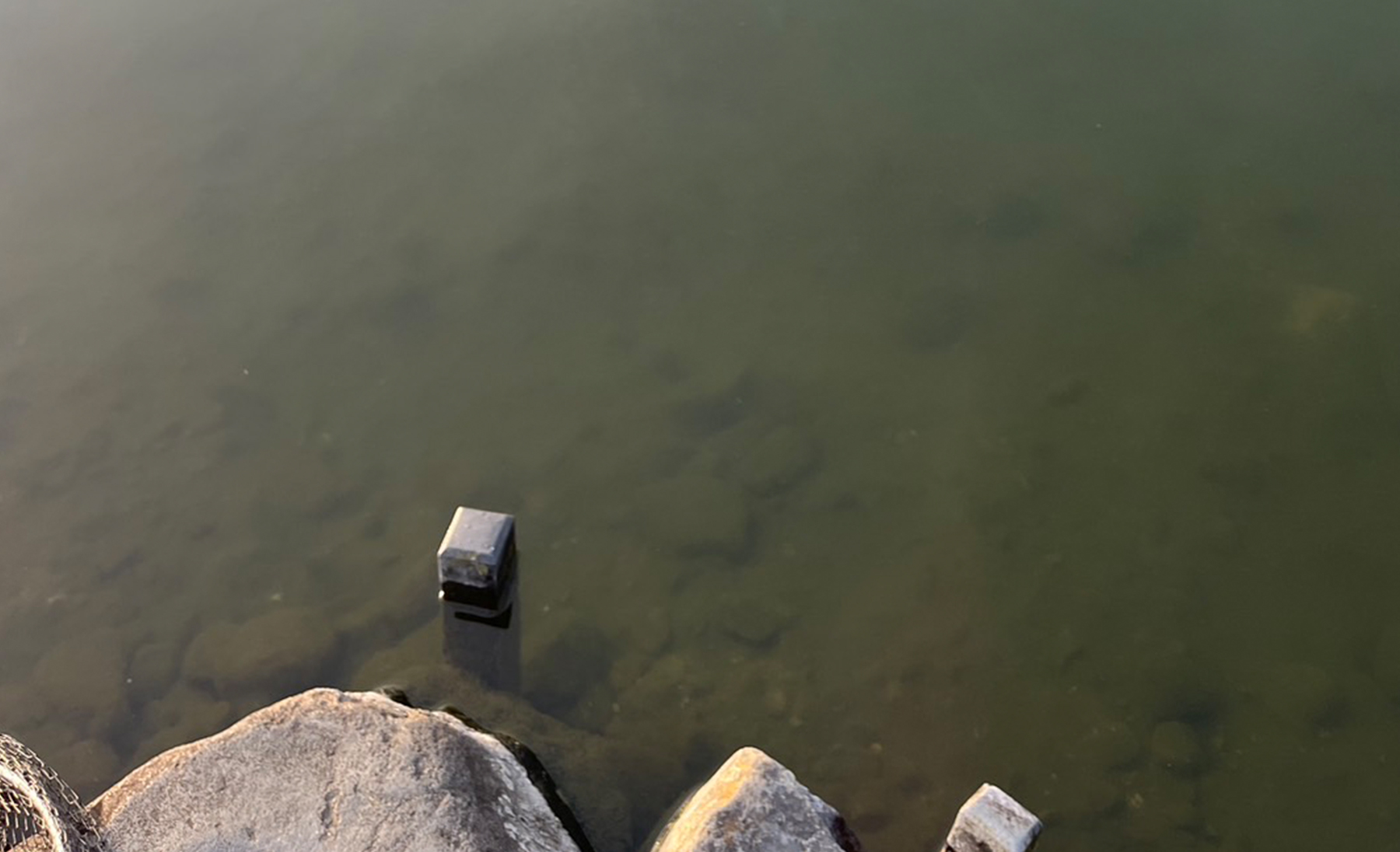 そこで上目の魚を狙い、ヘイズMDを試すとすぐに1匹釣れたが、バイトが少ないためヘイズを選択。理由としては、ヘイズMDよりスローによりレンジを広く探りたいこと、カラーはステイン・クリアで実績の高い1091カラー“キラキラウォーターメロン”。