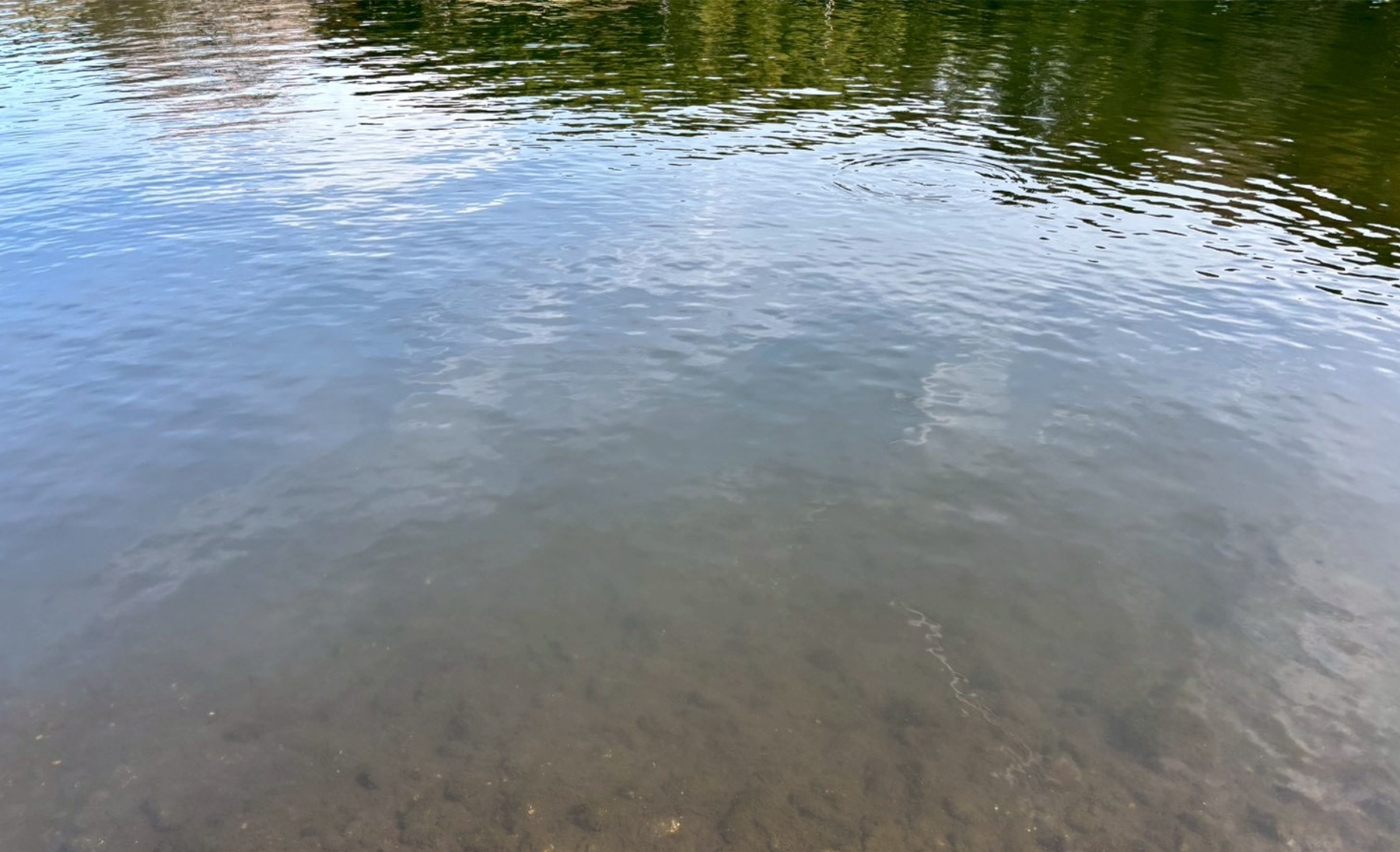 水質は前日の雨の影響でややステインウォーター寄りで、魚のシルエットは確認できるものの、完全なクリアほどのプレッシャーは感じにくい印象でした。