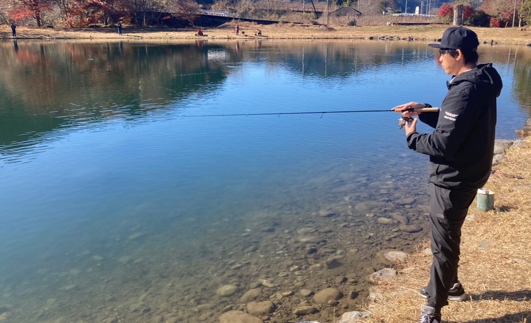 ポンドはクリアウォーターで足元にはニジマスだけでなく