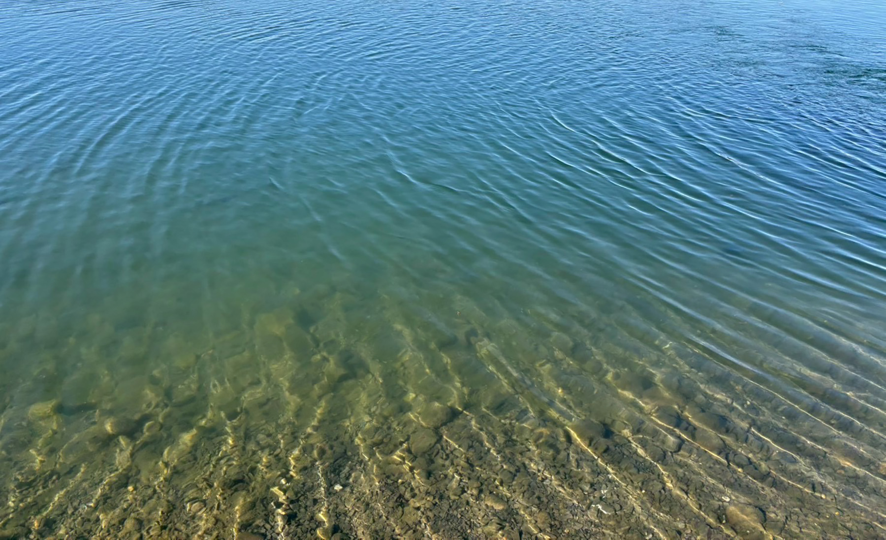 気温が上がるにつれて、サイトで確認できる魚も増え、全体的にレンジが上昇。見えているやや気難しい魚を狙うため、ここでシュヴァーンシャッドナノへチェンジします。表層30cm前後をジャーキングで攻めると大きなバイトが連発しました。