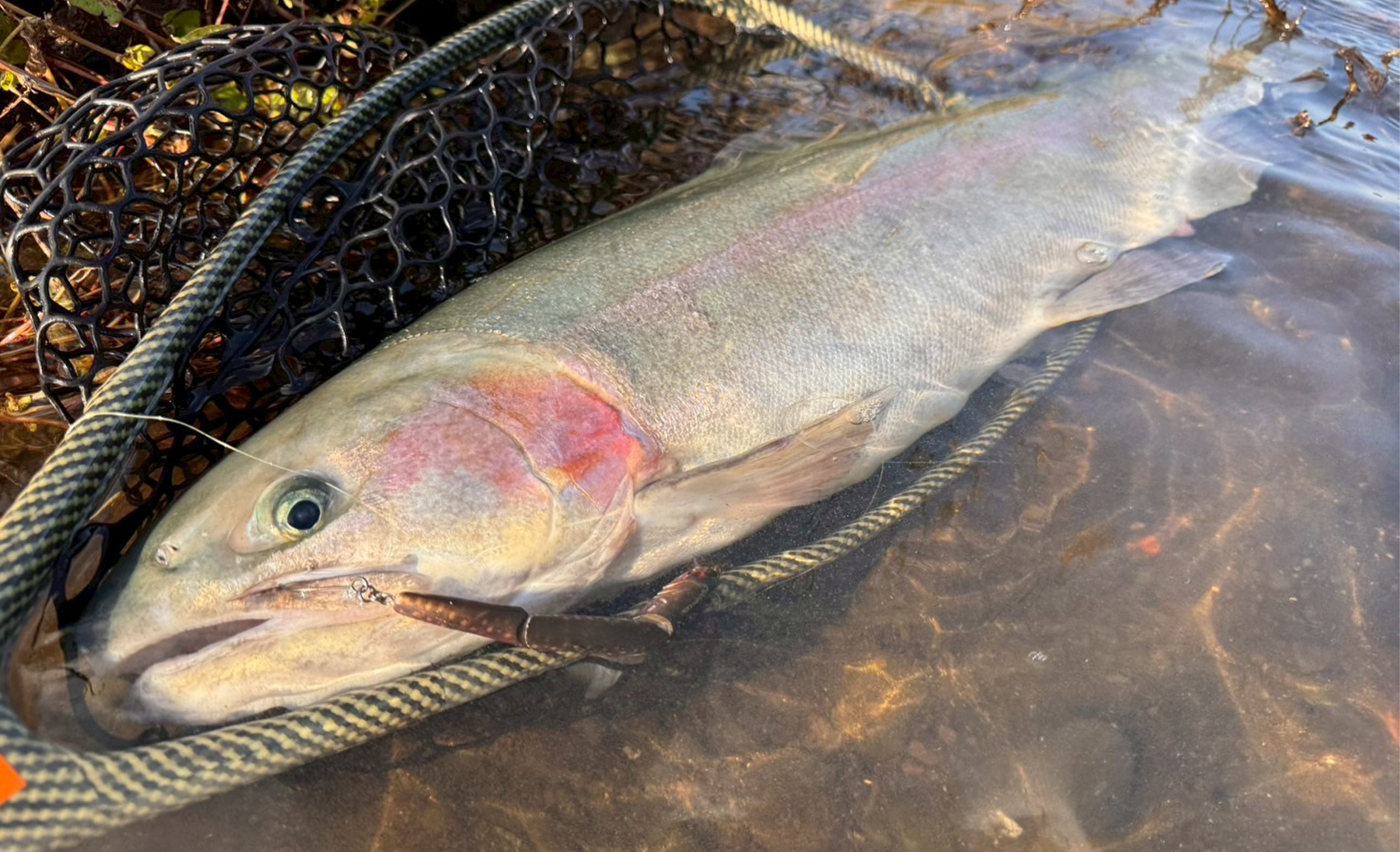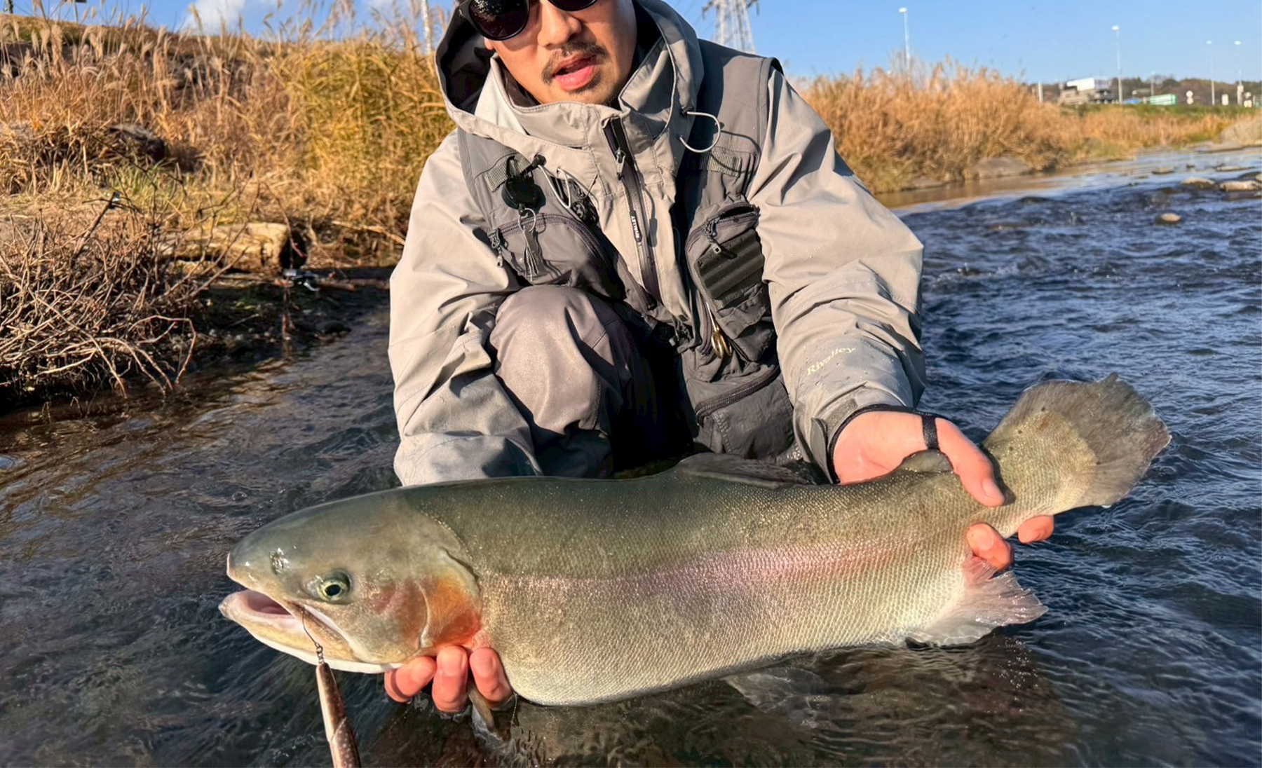 低水温期らしく、強いアクションよりも一定速度でのスローリトリーブが効果的で、60cmアップのニジマスを1本キャッチする結果につながった。