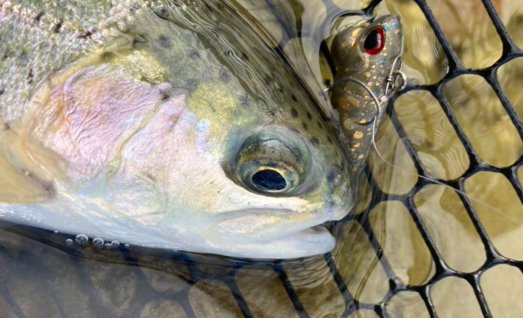 「なら山沼漁場」さんは広大なフィールドですが、足元のブレイク沿いもバイトポイントになります。回遊する魚が見えるタイミングで、ルアーサイズを下げ、操作性と食わせに重点を置いた『シャインライドナノ』でピンポイントに狙います。