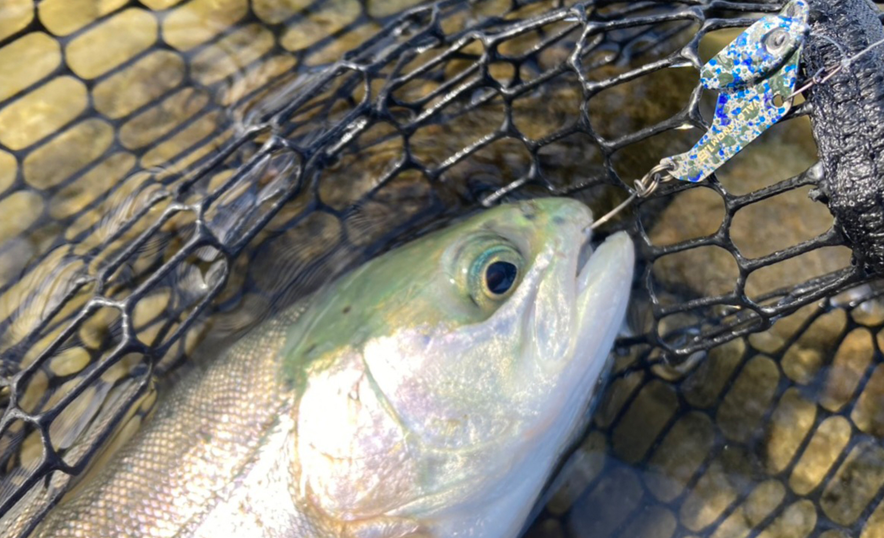 この日は早朝の冷え込みの影響もあり、魚がボトムにべったり張り付いていて動きもスローでした。そこで、水をしっかりと掴み、浮き上がりづらい『BlackBlast』1.8g / 2.2g を使用し、強い波動でゆっくりと「ボトムから離さずトレース」する釣りが有効でした。